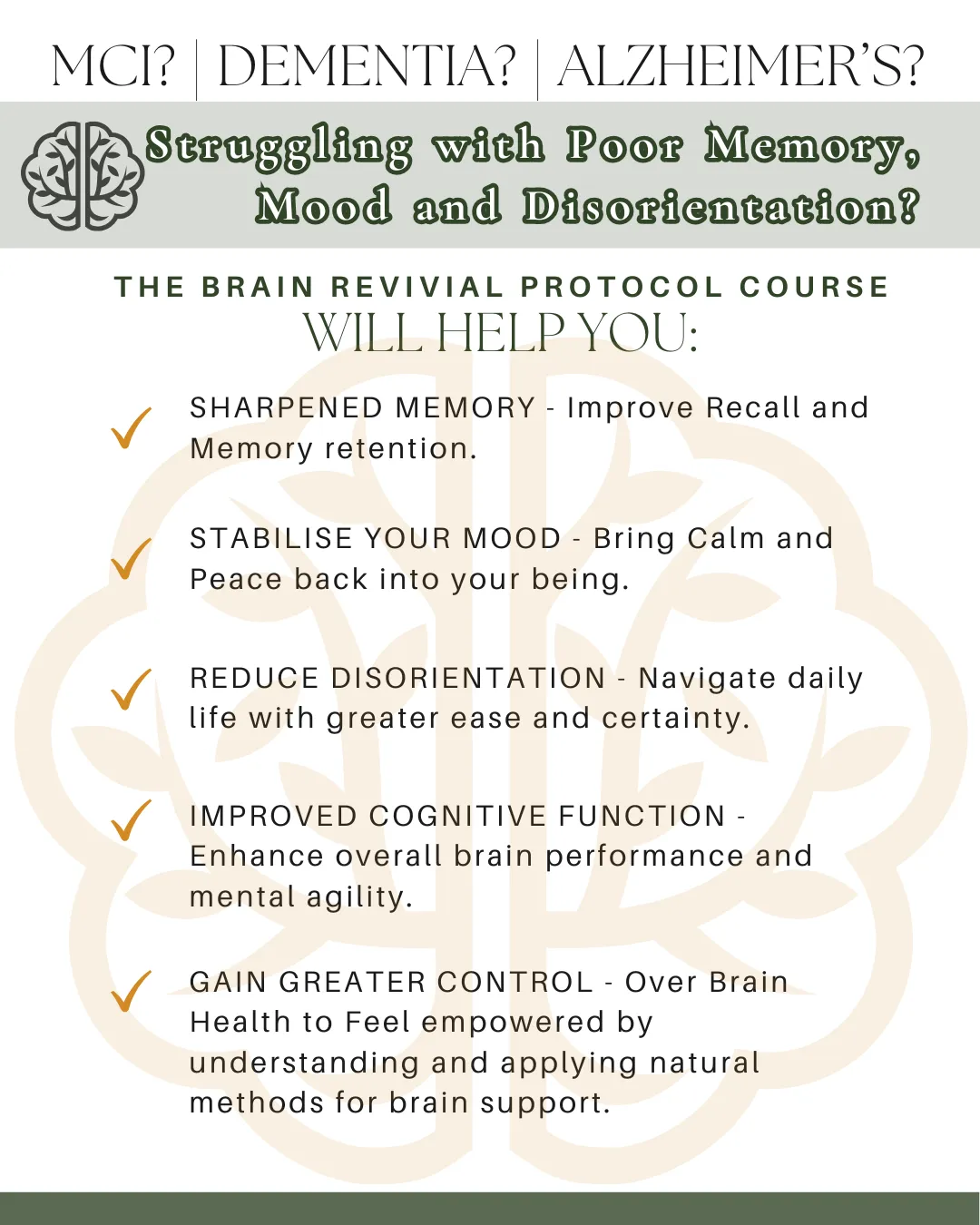 PLUS... As an Extra Special Add On, I offer FREE Monthly Q&A Zoom sessions to give you the chance to have all your brain health questions answered LIVE with me ongoing every month.