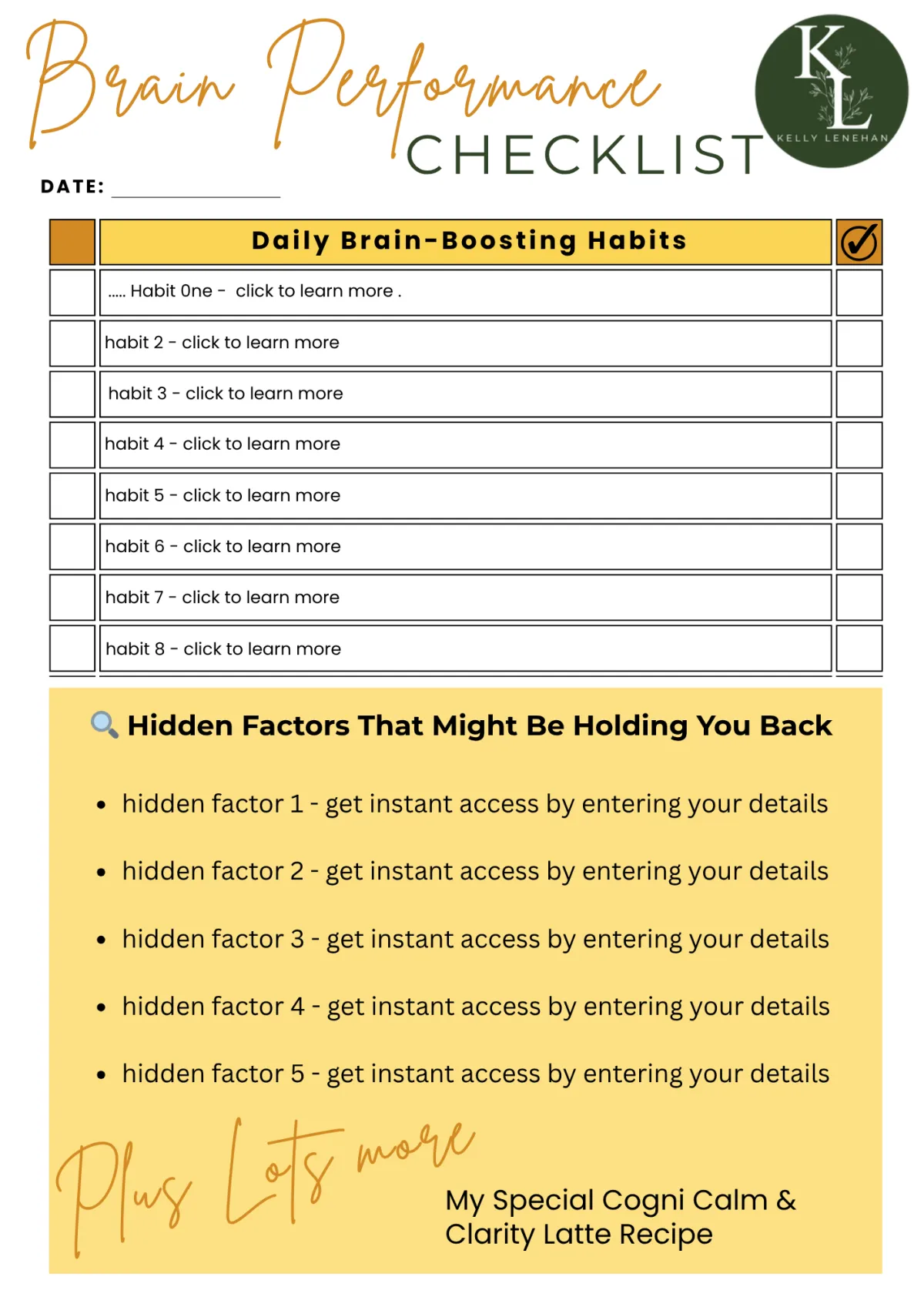 KEEP COMING BACK TO THIS PAGE FROM MY MAIN WEBSITE PAGE (kellylenehan.com) TO COMPLETE EACH STEP IN YOUR JOURNEY TO BETTER BRAIN HEALTH AND HEALING - UNIQUE TO YOUR CIRCUMSTANCES. - ALTERNATIVELY BOOKMARK THIS PAGE OR SEND YOURSELF THE URL LINK.